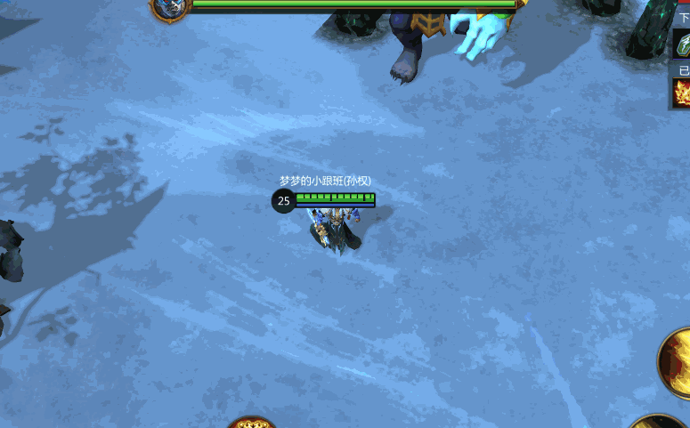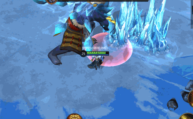 全程场上会不断的有小型冰川冒出,对命中的玩家造成伤害并附加减少移速效果。