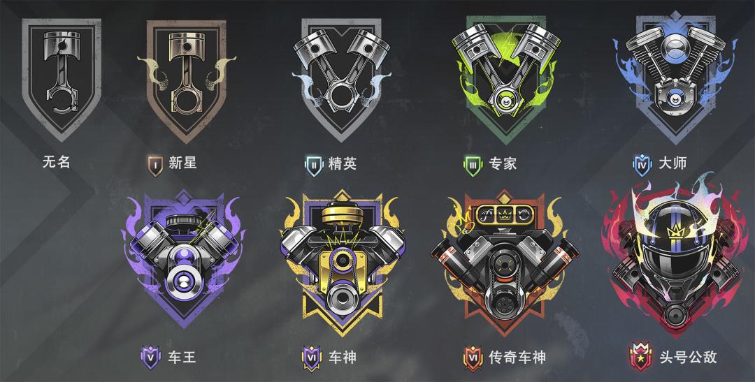 游戏中共有9个排位等级,从无名、新星、精英、专家、大师、车王、车神、传奇车神到头号公敌。