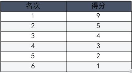 2. 在组队巡回赛中,最多两名玩家组队参赛,且组队玩家间排位差距不超过2个等级。每场对局共有六人参赛,在官方赛事地图上进行比赛。第一名玩家冲过终点线后,开始10秒倒计时,倒计时结束未冲过终点线玩家按距终点线先后顺序排名次。按排名先后获得不同分数,由高到低分别为: