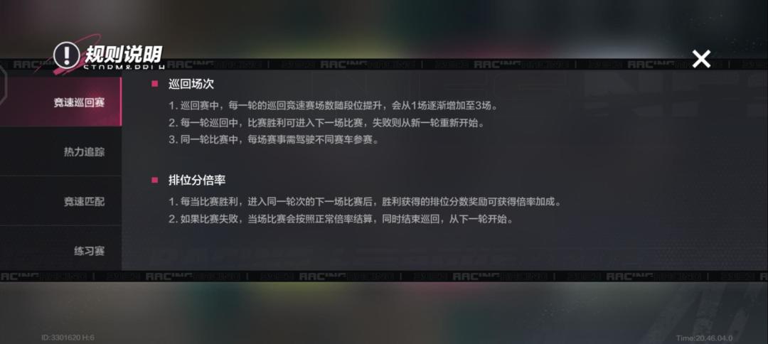 1. 每一轮的巡回竞速赛场数随排位提升,新星-精英1场,专家2场,大师-头号公敌3场。