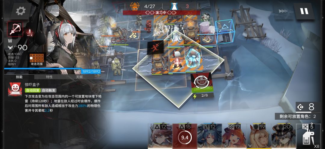 投掷手和炮手有相同的攻击范围,而这次活动没有飞行单位所以只能攻击地面的缺点可以忽略不计,独有的特性余震对这次需要攻击次数的机制很有效果!