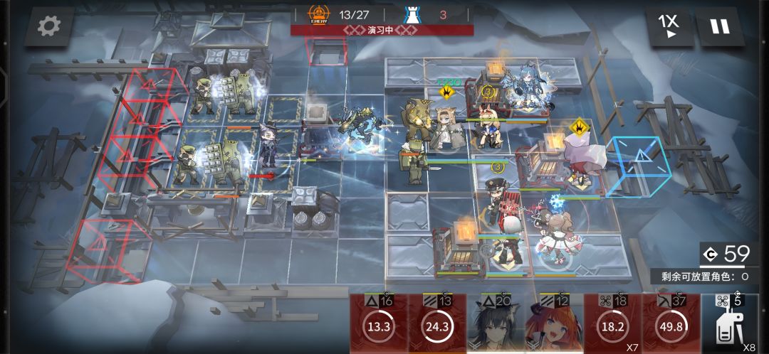 后面的关卡基本就围着供暖器部署干员,远程的敌人和会威胁到供暖器的喷射罐就提前下特种切掉,基本也没怎么在意远处的供暖器……