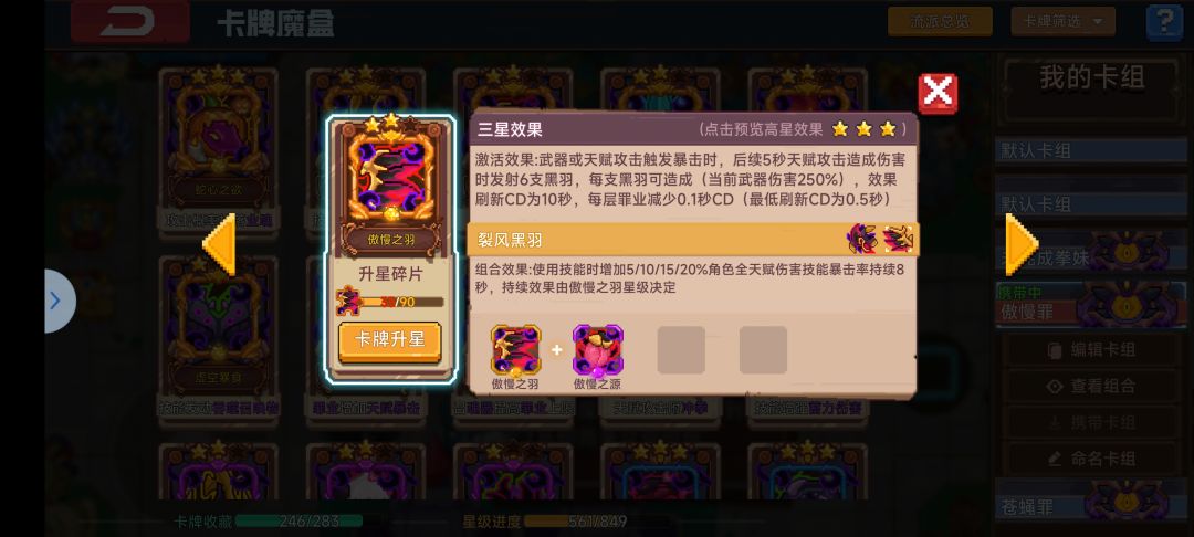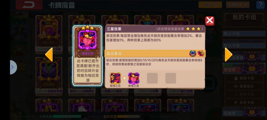 省流: 罪变最低要求,卡牌(魂器,傲慢之源,傲慢之镰3星),(裁决,傲慢之羽高星)。魔印(原罪之源紫色,恩赐金色)。宠物:40级罪宠。