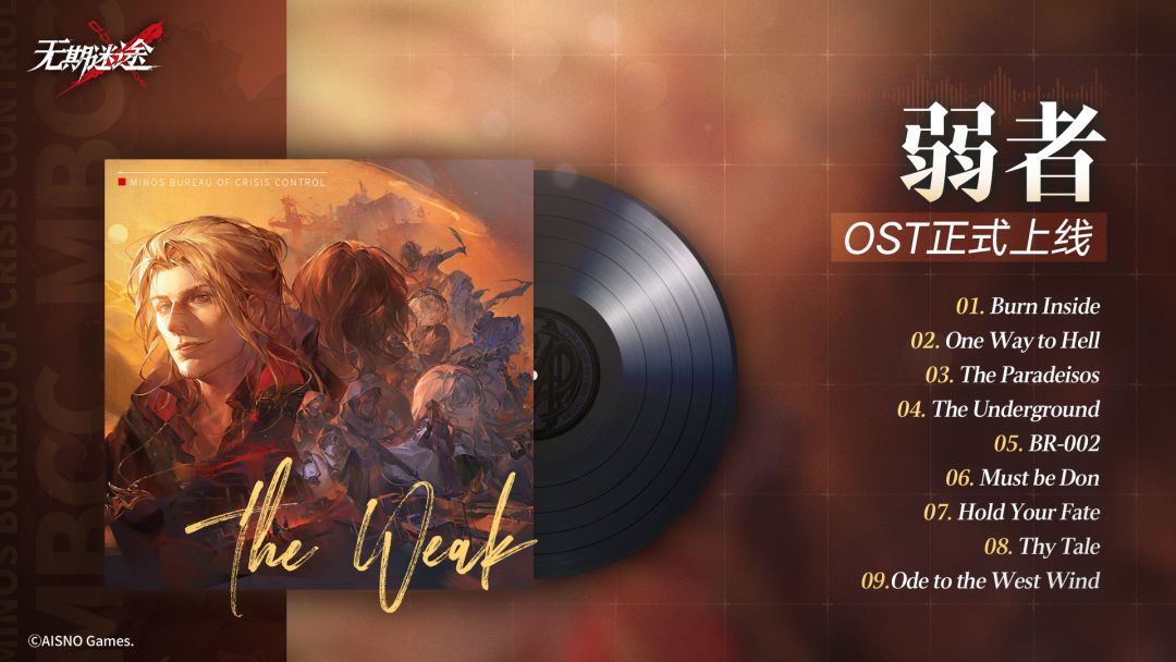 《无期迷途》游戏原声OST《弱者》现已正式上线,专辑共收录9首以「弱者」为背景创作的原声音乐。