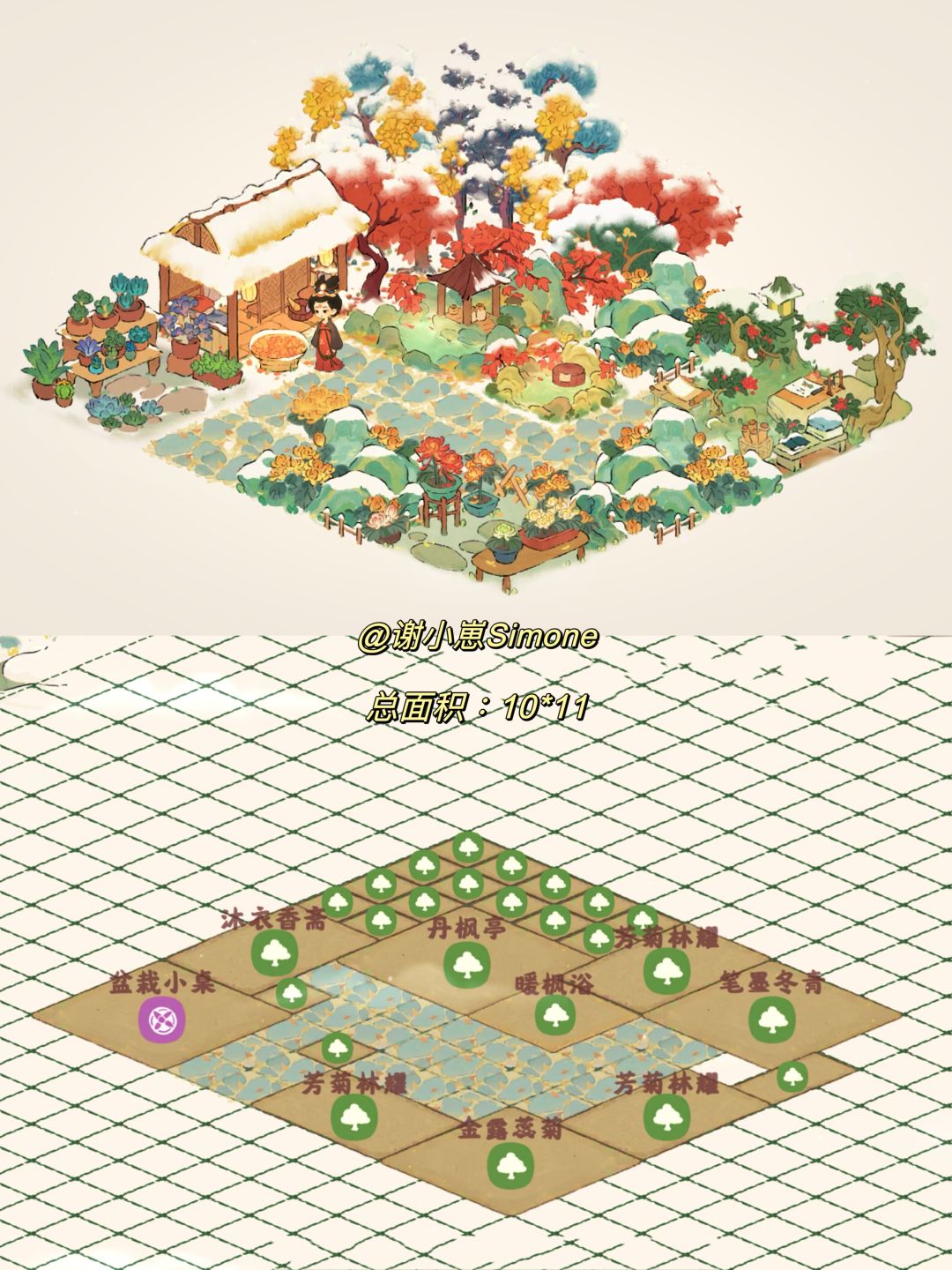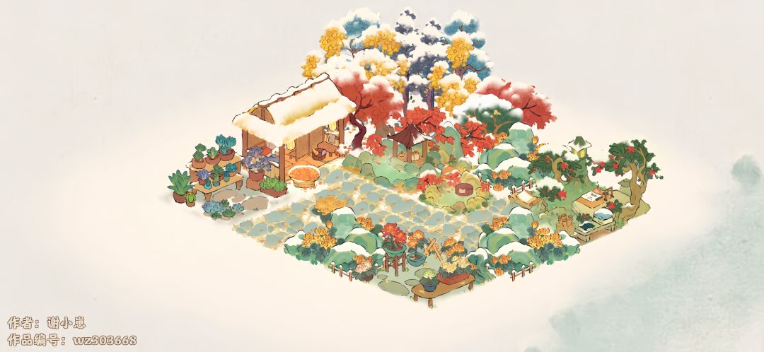 雪景和这次的新建筑都太好看啦~~~夸夸夸。先发一个没有甲的布局,高大的彩色树木们搭配雪景等于一副莫奈风的油画,hh~