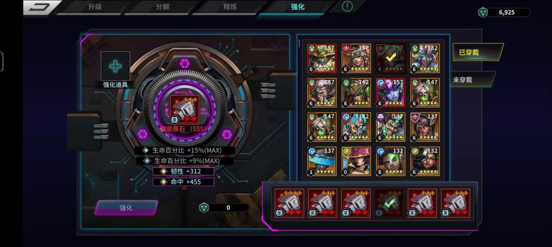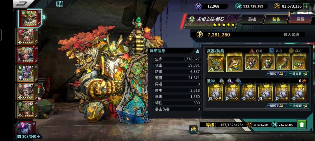 第一肯定是猴子的一套20级血磁石,圣物第二属性是血就行没必要追求高级的很浪费精炼石,强化有条件就用橙的的强化石,有命中就行没必要强求血量,命中真的很重要。磐石刚升红的时候我就挖到115就卡住了,就我就一天用一个橙强化石加几百命中就可以过个1关或者2关,命中真的很重要千万不要忽视,只看重血量,我猴子本来是338万血,现在是330万不到,6个强化命中是从1100加到3500。