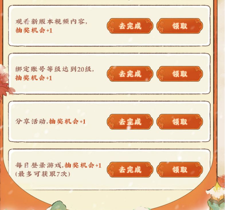 活动期间,大家只需完成观看新版本CG、提升账号等级、分享活动页面、每日登录等简单任务即可获取抽奖机会,废话不多说,大家赶紧来萝萝山薅羊毛吧~