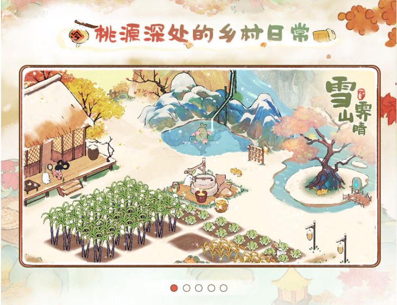 暮雪飞花,朔风呼啸,添上一层银装的萝萝山静谧之中又带了几分凛冬特有的美感,让人不禁产生想要出游的冲动。恰逢全新区域烟火桃源乡正式开放,海量新玩法缤纷呈现。山民们可以来酒楼畅饮一杯,到画片铺子收集奇异的画片,与其他玩家一起在游艺社用萝萝牌、翻翻棋、斗兽棋决个高低,在桃源乡的茶摊处听评书先生讲述那些经典又有趣的故事......哦对了,还有花铺、渔铺、烟火摊、灯笼摊、车行等各家店铺等你来探索!