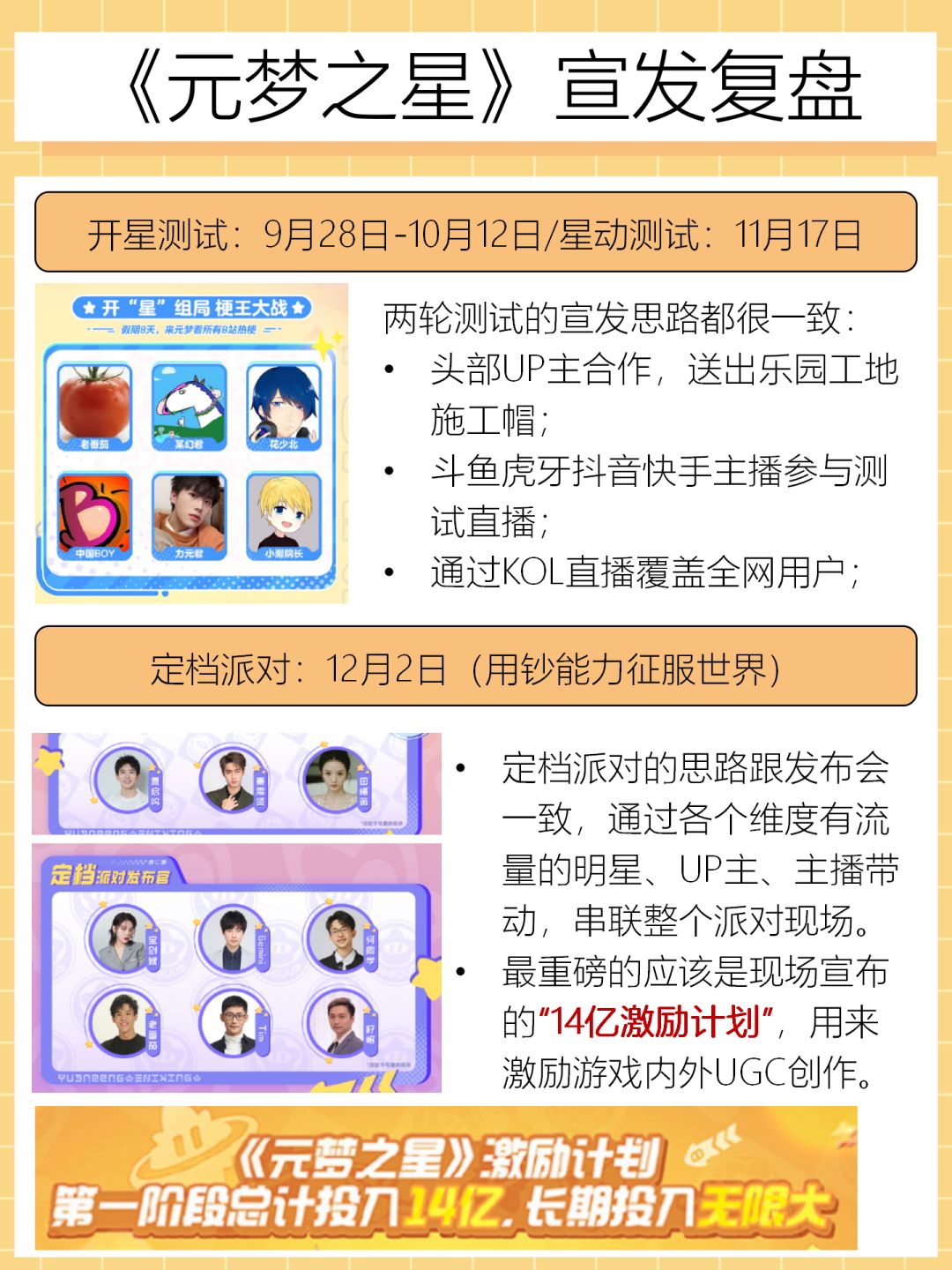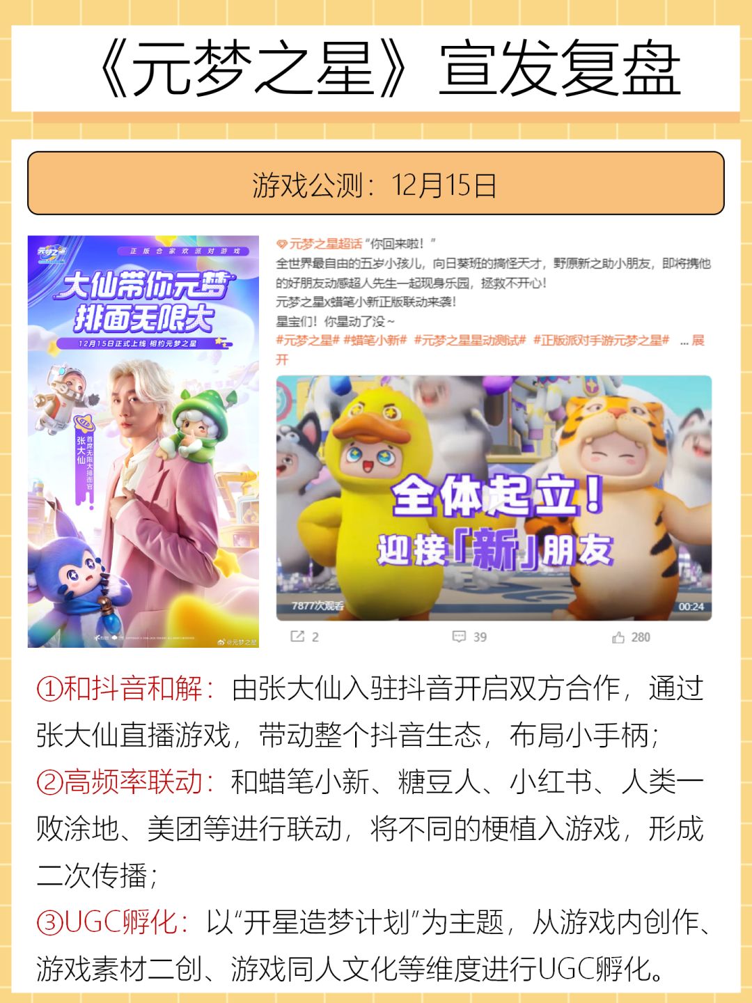 ③UGC孵化:以“开星造梦计划”为主题,从游戏内创作、游戏素材二创、游戏同人文化等维度进行UGC孵化