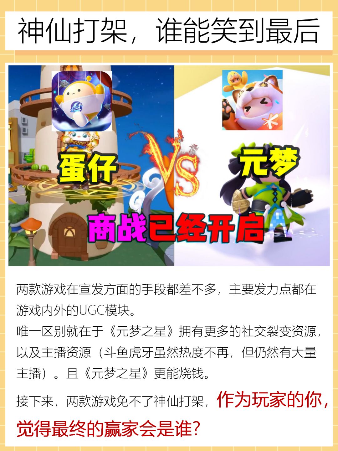 元梦之星和蛋仔派对,你觉得最终的赢家会是谁?
