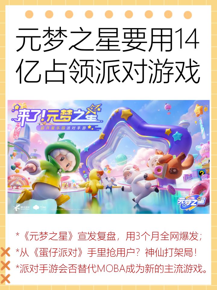 最近大家应该都刷到不少元梦之星的内容,号称要花14亿做UGC生态的天美将矛头直指蛋仔派对。