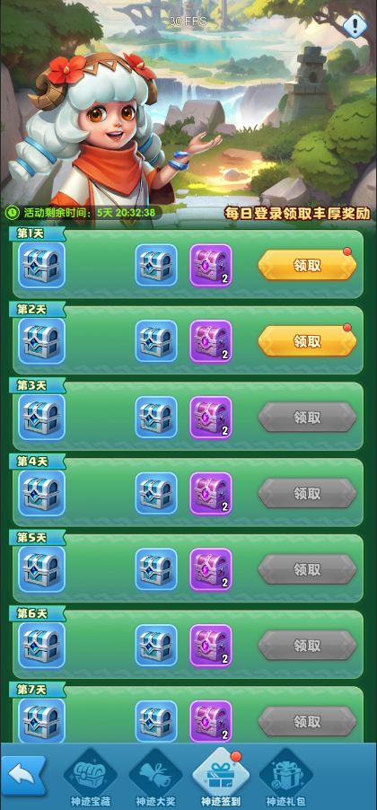 神迹签到活动开启后,旅行者们可以在【神迹签到】处领取宝箱奖励