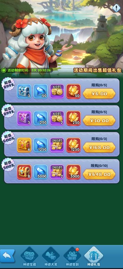神迹礼包活动期间,可按需购买神迹宝箱