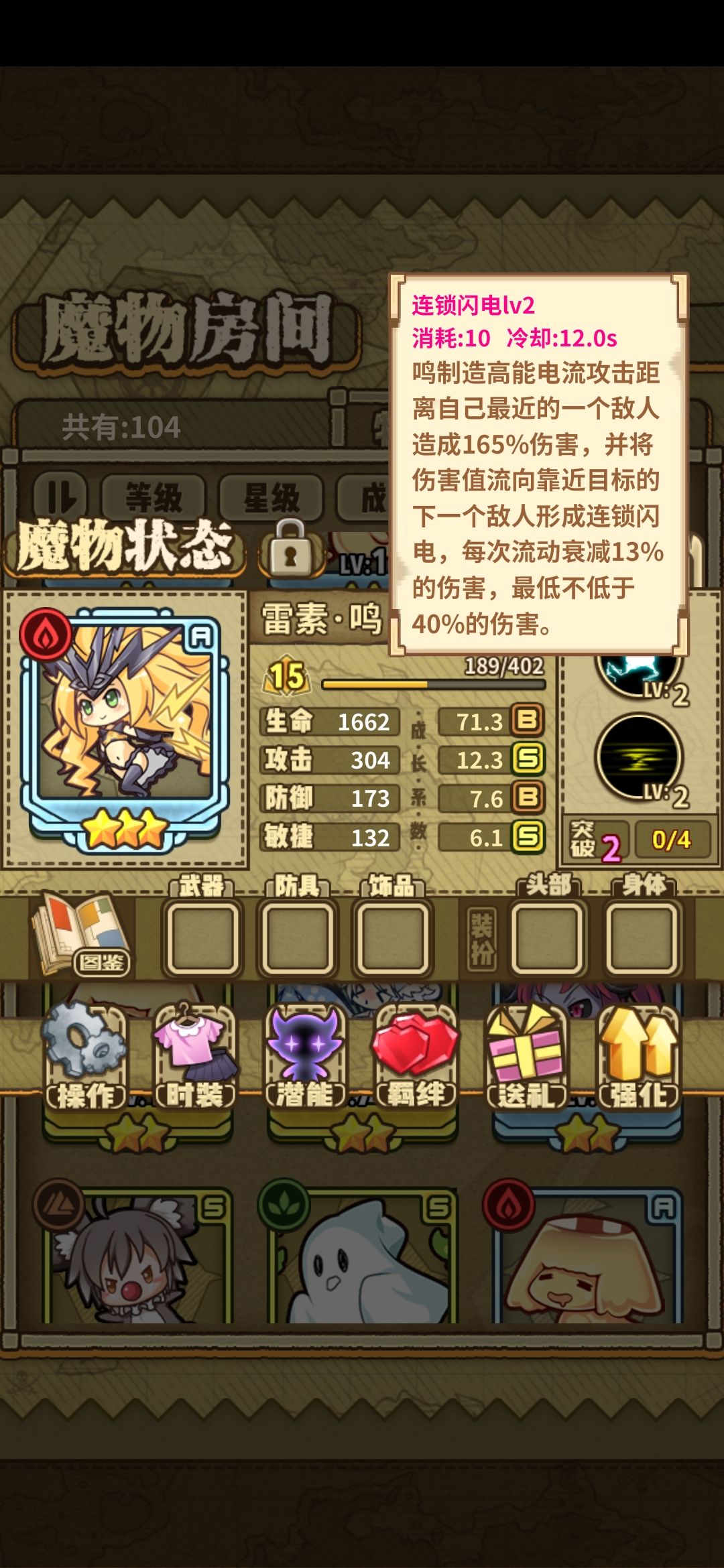 第一张图市场有四个三星,如果有幸拿到雷素.鸣,那么恭喜你,你可以短时间通关第一图,一图boss技能会召唤很多小怪,雷素的闪电链可以直接清除小怪。