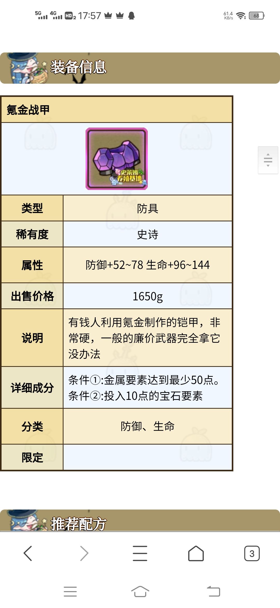 氪金战甲的材料除了刨矿的铁,核心的宝石商店会卖冰晶石和粉红史莱姆结晶。