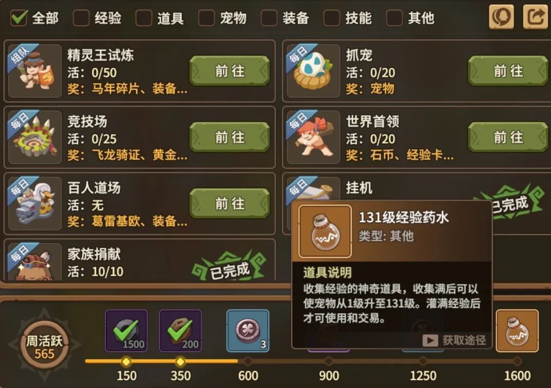 同样每周活跃度赠送的经验空瓶也是一样(绑定,无法交易)。