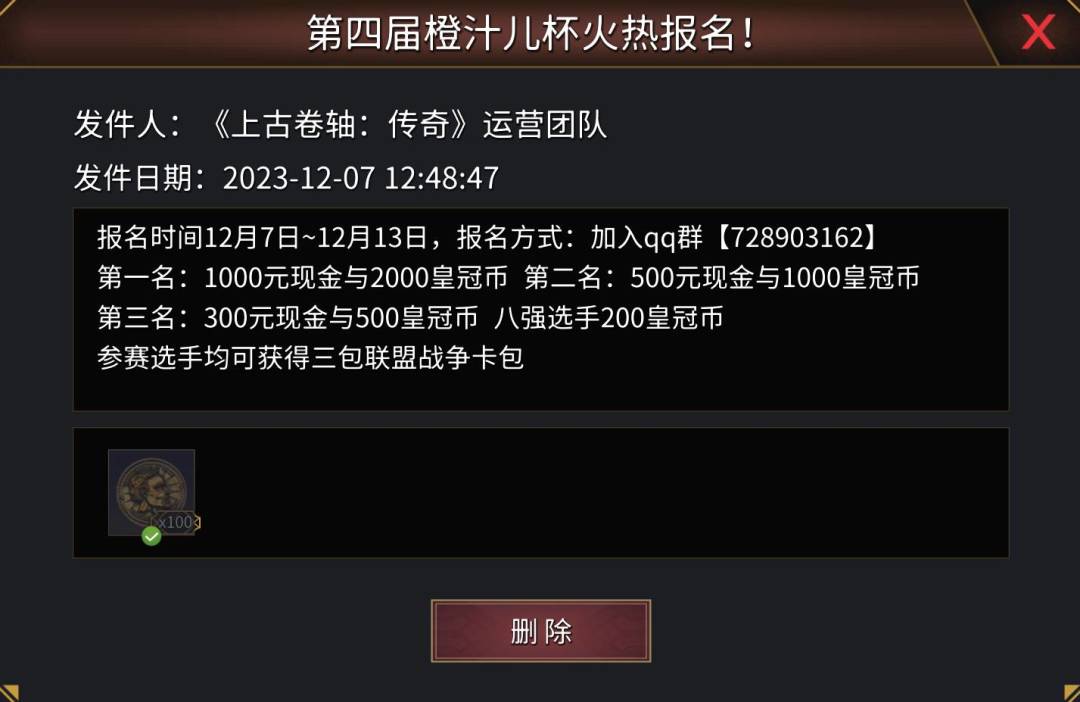 此次比赛官方也非常重视,给予了一定量的支持,并在游戏内以邮件的形式进行宣传。