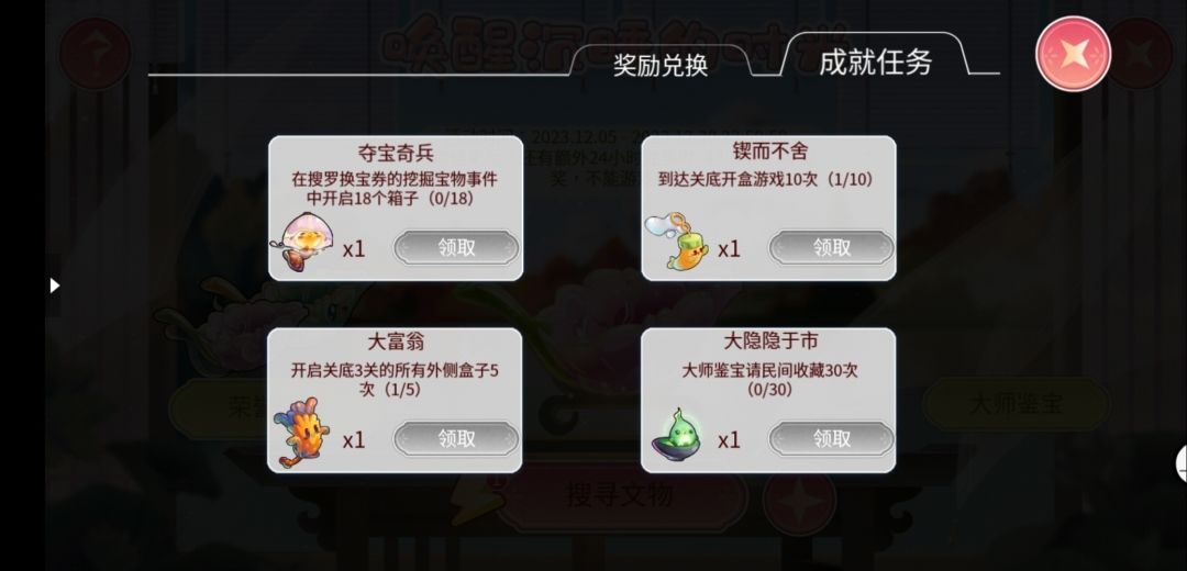 1、本活动分为三部分:搜寻文物、大师鉴宝、荣誉兑换;