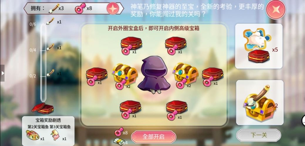 开启关底宝盒需要钥匙,快打开纸卷收集钥匙叭~