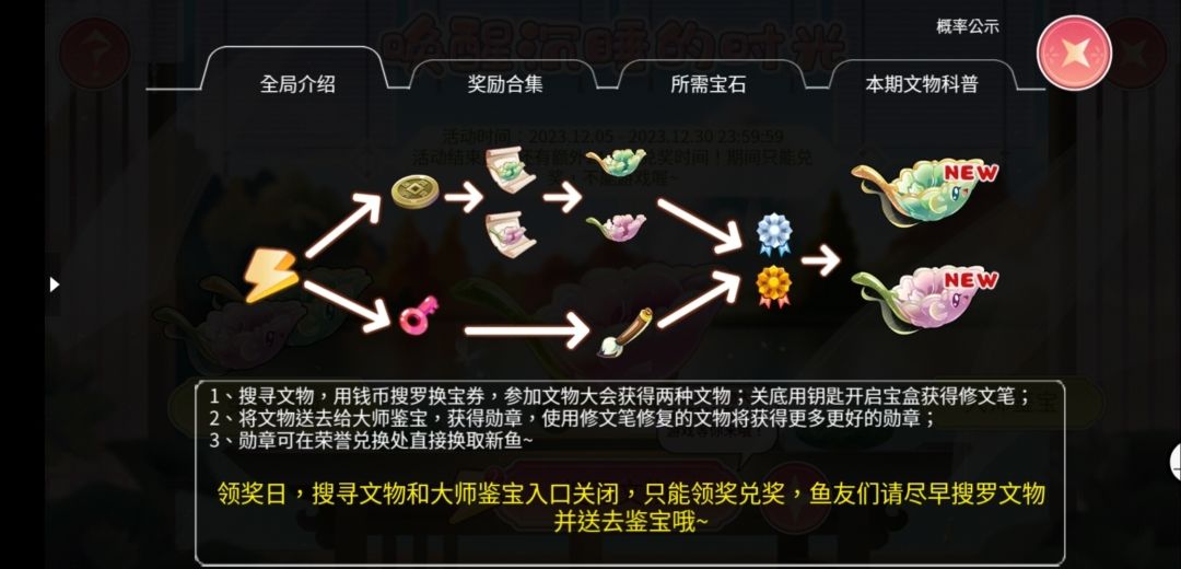 唤醒沉睡的时光活动上线啦!鱼友们快来一起参加文物大会,将新鱼带回家!