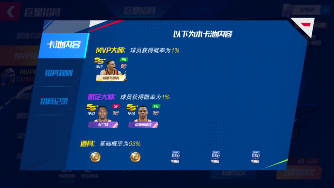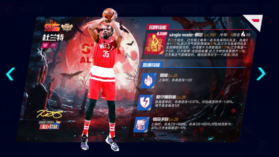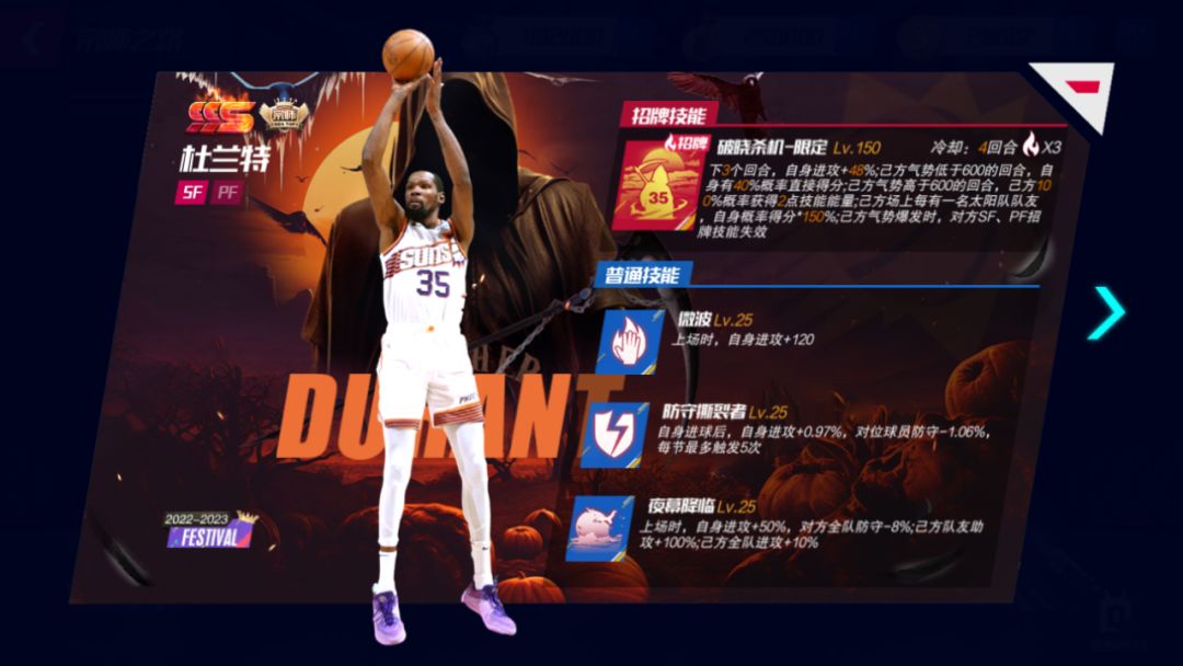 活动期间,可使用【精准招募函】在【精准招募-完美进攻大师】池中,招募全明星队杜兰特。