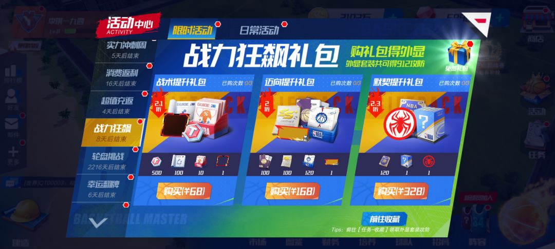 双十二战力大补充!战力大礼包限时直购,购礼包得外显,还可以得到额外的攻防加成!(新增默契状态礼包,可以获得中级默契书礼盒、心态进阶课程,助你提升默契等级)