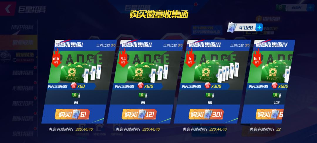 徽章收集函可以在右上角的商城中购买获得!购买徽章收集函的同时还可获得宝石奖励!(后续还会开放新的徽章孔位,解锁强力套装效果属性,敬请期待!)