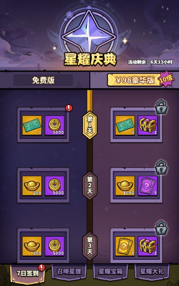 6、活动四·星耀庆典,活动期间充值达到制定额度即可领取奖励