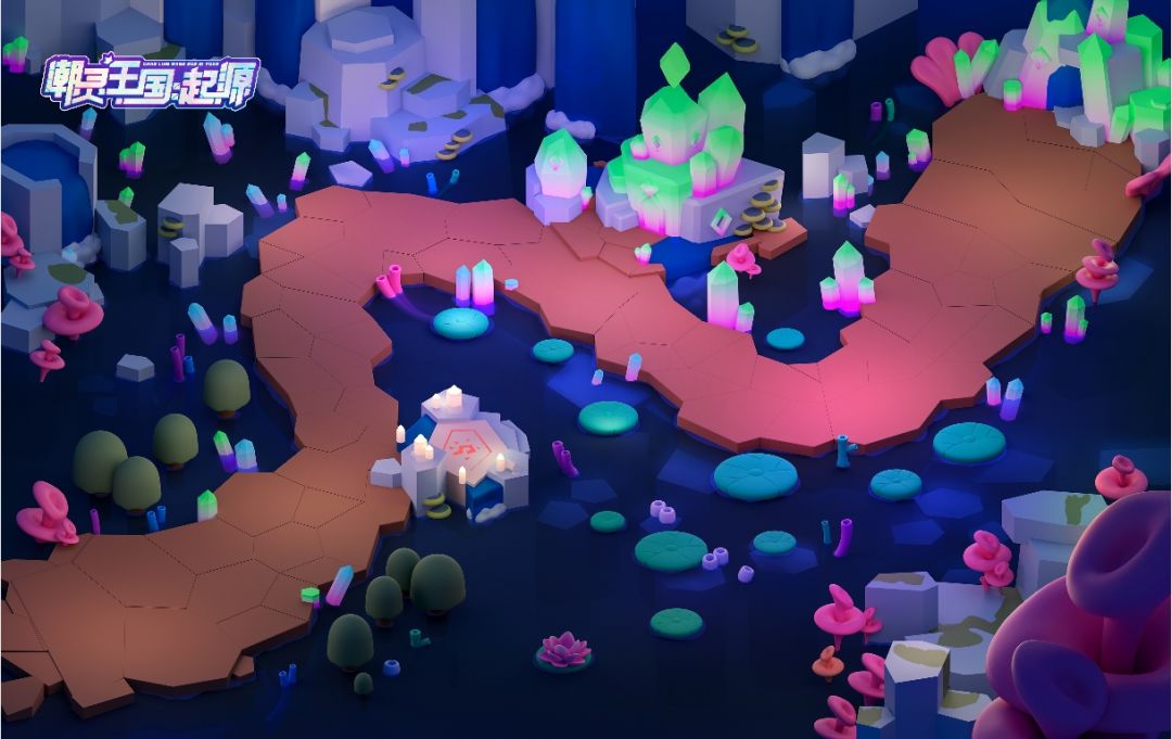 水晶王国建于一座巨大的矿脉之中,山脉和地穴环绕,在居民潮灵的努力挖掘下,形成一个狭长隧道。境内分布着许多各式各样的水晶与宝石,形成了壮丽的景观。王国中心是一座巨大的水晶矿山,供应了丰富的水晶资源,是整个王国繁荣的基石。