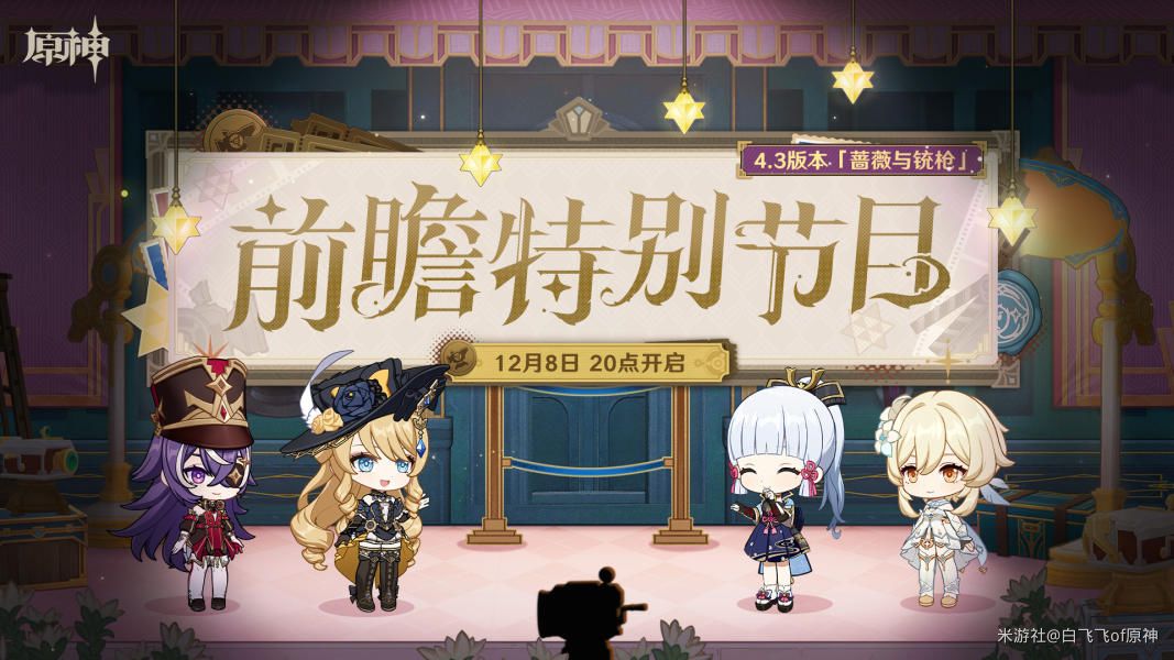 今晚周五(12月8日)晚20点,原神4.3版本的前瞻直播将要准时上线啦~