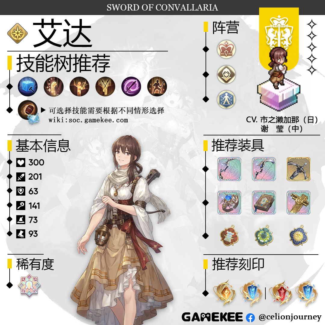 【角色总结】 艾达在现阶段来说,玩法上比较有创新,推箱子流也是值得一试的玩法。但是从整体的强度上来说,推箱子流容易被贴脸,而之后新角色的冰法流强度会更值得期待。艾达的个性技能:援护攻击是回合外的独有机制,不享受平A的效果。抛洒酒桶后可以点燃的地形,也需要有火系队友的配合才能够点燃,不过对于盾牌兵来说,艾达或许是个不错的应对方案。虽然缺点明显,但是靠近物品就能获得40%的减伤,以及一回合大招打出40%x2.3x4的系数还带回能量,增伤3和群体魔防以及驱散部分debuff都让她不容小觑。微光+大招+街垒战的配置会比较多。 如果是氪金大佬或是戳中XP(比如我)推荐入手,如果不是特别追求,建议攒资源等下一个角色~