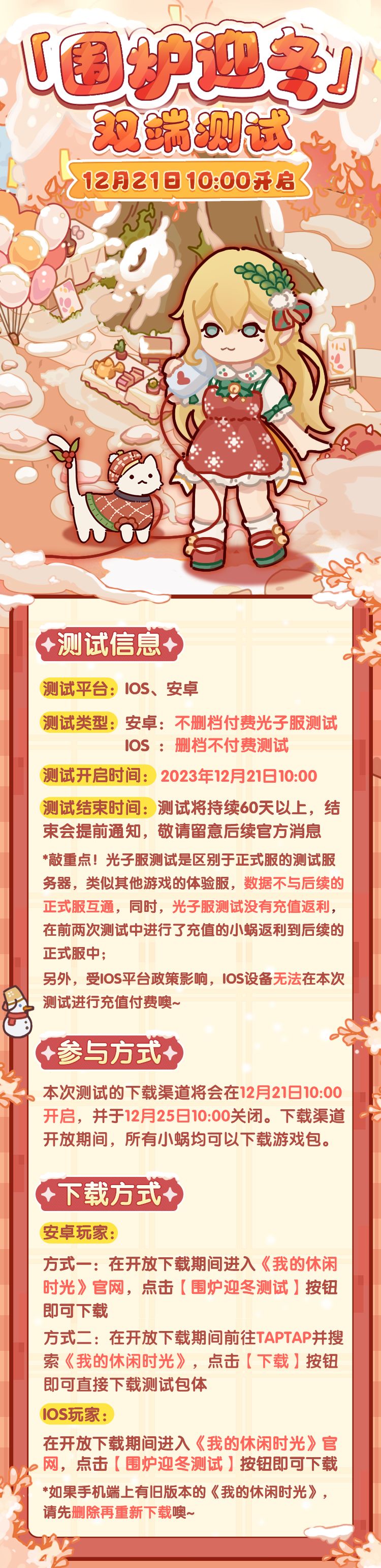 (已开奖)抽测试名额|「围炉迎冬」iOS&安卓双端测试定档12月21日,若来圣诞雪屋&loopy玩偶&咕卡套装免费送!