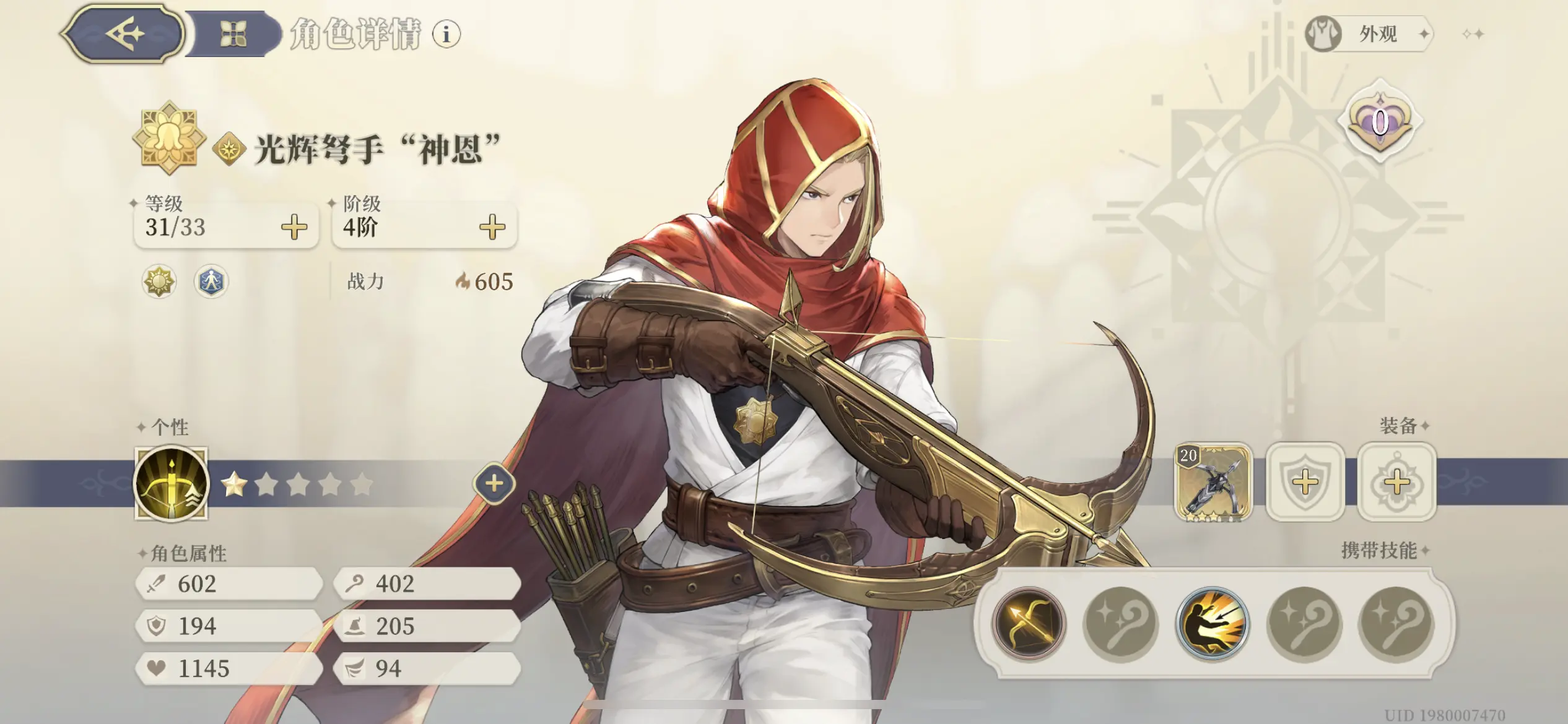 光辉弩手神恩,自带的击退就可以了。在活动关卡6里,远程击退敌方刺客很好用。