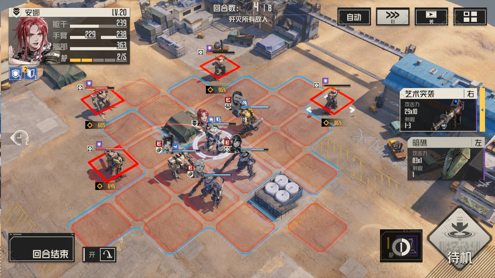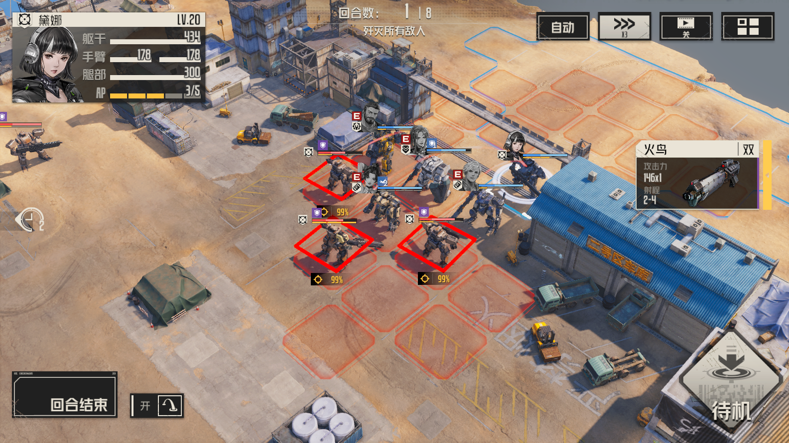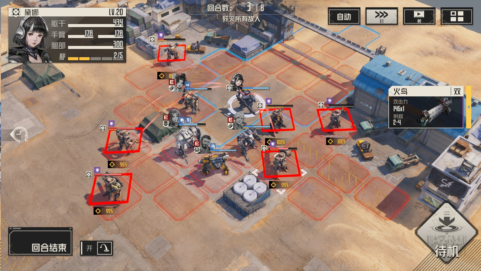 我方向前推进,面前有正好3个狙击兵,我方可贴身对敌人进行攻击,由于狙击兵的射程是2-4,我方近身可对其造成伤害,而敌方无法进行反击,相当于白嫖血量。