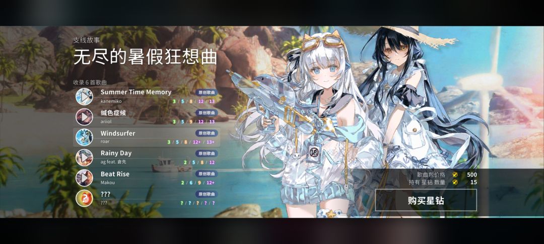 游戏付费内容以歌曲为计量单位计算,一首歌曲的价格为100星钻。内购系统拥有曲包和单曲购买选项,一份曲包含有3-7首乐曲,所以曲包价格300-700星钻,也就是18-42块,此外,当期更新的曲包会限时降价100星钻,购买后可以在当期活动中提供加成道具,驾驶员等丰富奖励。