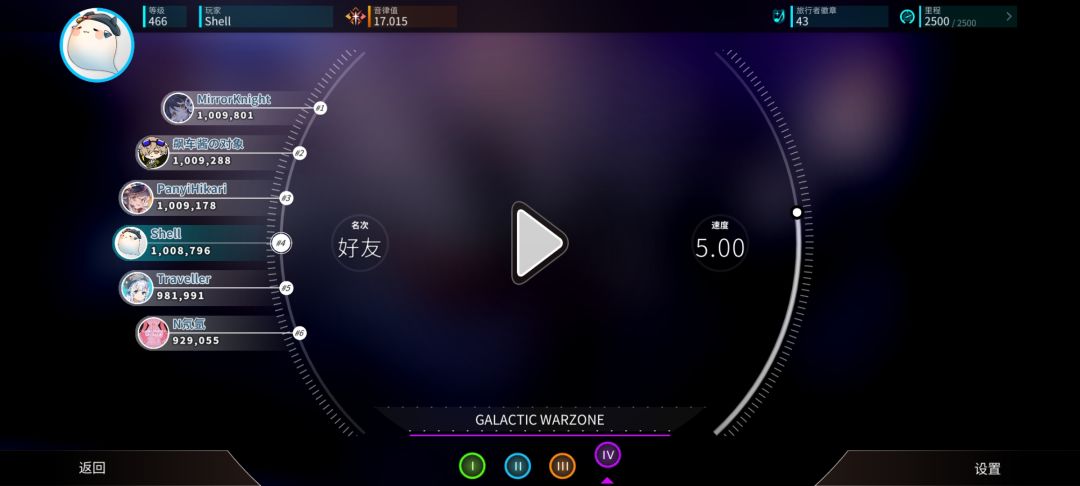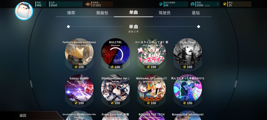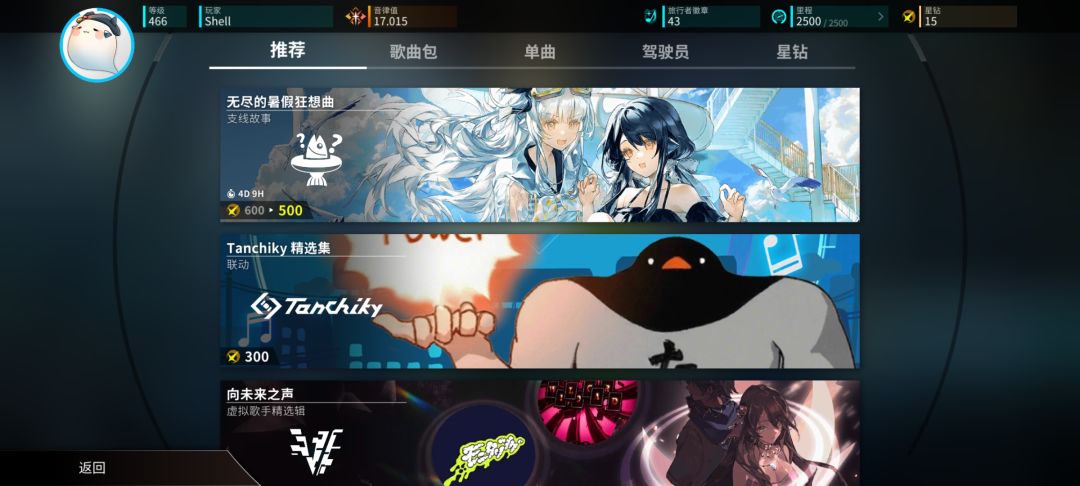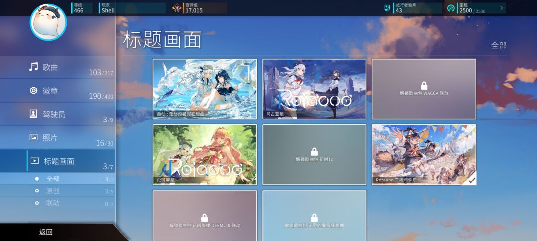 玩家游玩任意乐曲都可以累计里程,使用里程解锁故事点,探索剧情和各种奇奇怪怪的挑战,获取徽章和乐曲奖励。还可以消耗里程左边的旅行者徽章来解锁回忆和图片。更有隐藏乐曲作为Boss等着你。