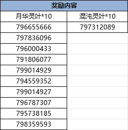 将在参与成功并答对的玩家里抽取月华灵叶*10(10位),混沌灵叶*10(1位)