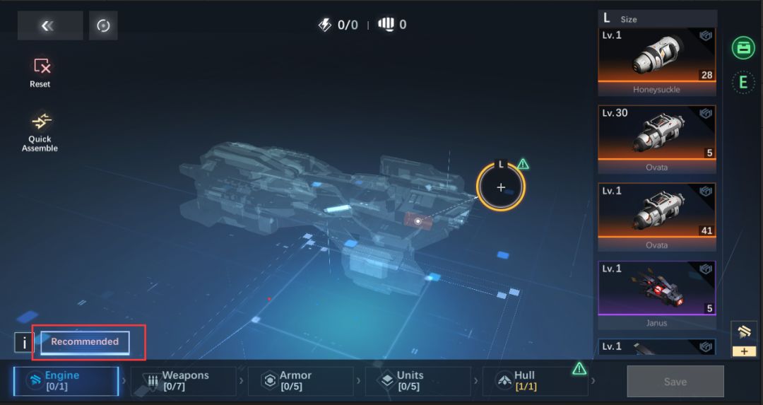 f) 本次更新后,可以通过按钮查看舰船的参考配置,包括武器,护甲,组件和引擎。