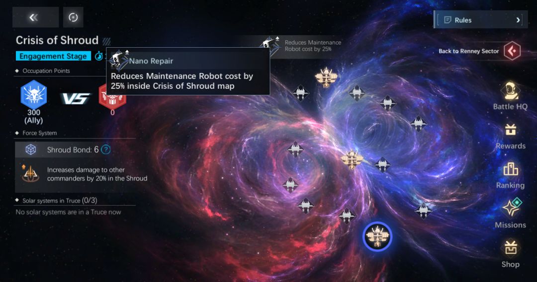 iii. 停滞星系和禁锢星系会每隔一段时间开放。然而,指挥官们无法直接派遣舰队前往这些星系。他们需要使用空间站传送功能,因为这些星系完全独立于极乐星云其他星系之外。