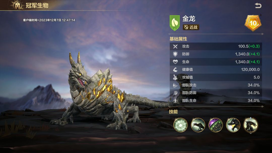 冠军生物建议选择森林阵营的金龙,战斗中作用如下: