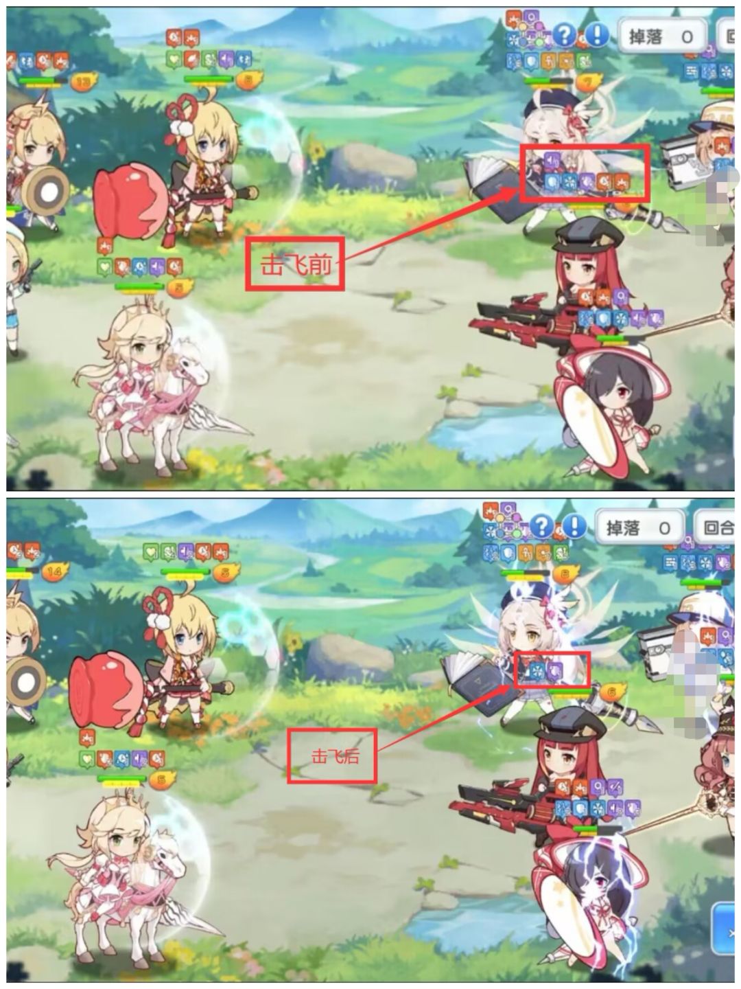 3、对被击飞的角色造成buff直接伤害和减能,可以恶心一下对手,使用得当可以让对手两回合放不出技能。