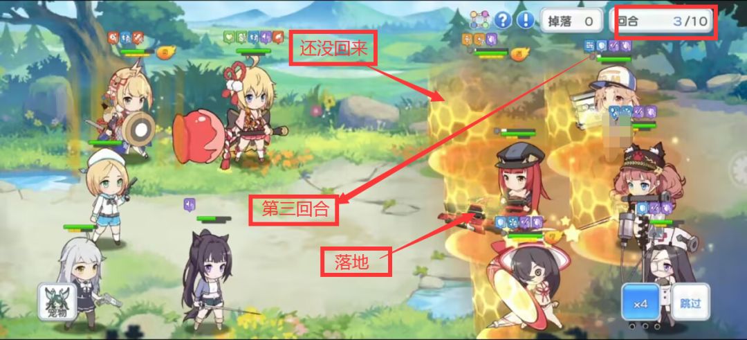 事实也确实如此,露妮娅第三回合并没有回来,这样对面四舍五入就失去了露妮娅两回合的庇护。落地的时间是轮到该角色出手的时候才回来了,而不是跟宠物吞噬一样,回合开始前回来。