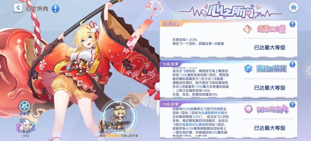 谢妮丝就算没有心向和升星,她的击飞机制也还在的,不过没有后续,比起心三的增加击飞概率和次数,不如五星配合四星增加后续击飞的能量。