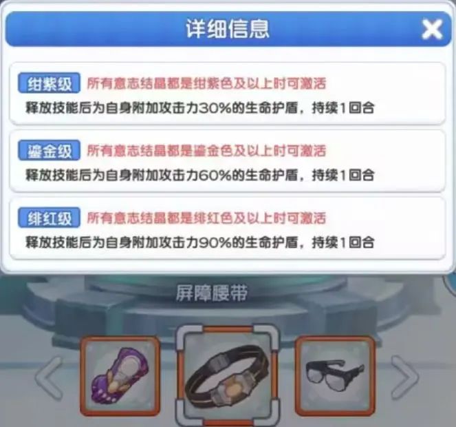 5)跟哀怜的反击,露易丝等的追击不同,她们都是普攻反击(追击),烈阳谢妮丝是技能反击,那有没有什么是释放技能后的加成?当然有啦,这边推荐的是鸣武【屏障腰带】的效果,每次释放技能都会加一层护盾,破别人的护盾,给自己嘎嘎加。嘻。
