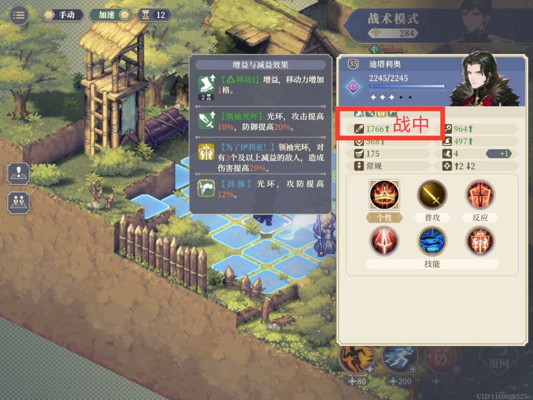 区间C包含:战斗中与攻击力有关的buff,可以在战中人物面板上查看(强烈建议仔细看上面我详细写的看buff操作方法)、装备技能、角色个性