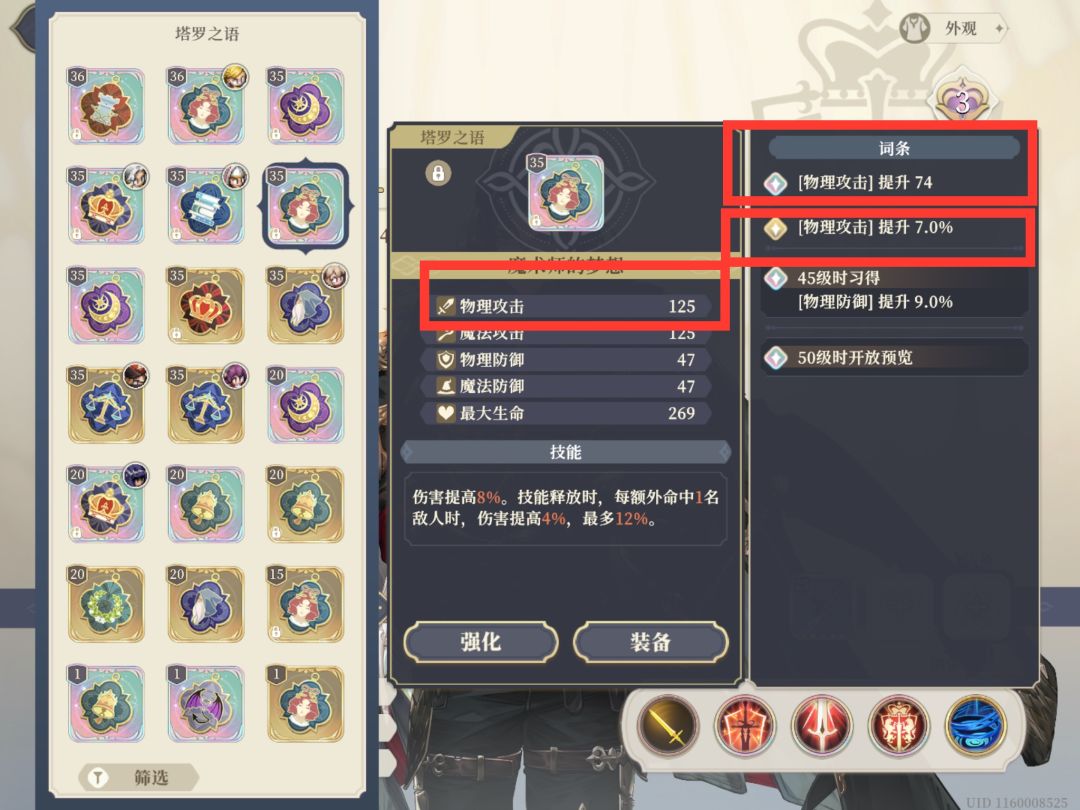 -武器、装具下面的【装具技能】,部分装备带攻击力加X%技能、塔罗之语下面的技能(如恶魔的诱惑)
