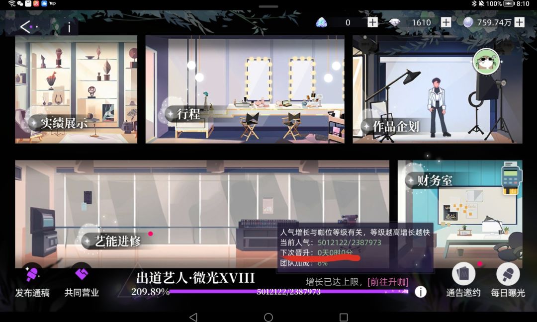 人气开始落后!不要去觉得我拿一个中级通告去补一点就100%了,这可能导致你后面差一个高级就上B,结果还要等3个小时的情况