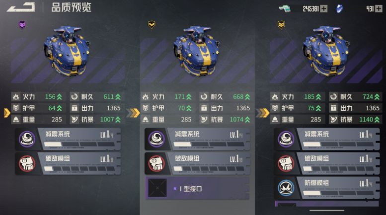 本篇内容中会为大家介绍满级时的技能模组,但机兵获取时,只有基础模组,另外两个模组需要在机兵部件【品质解放】后解锁。