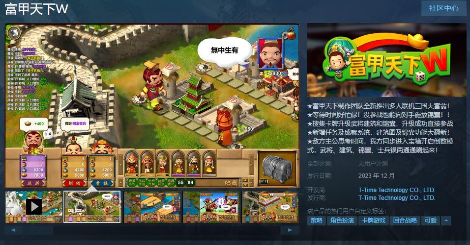 今日(12月8日),光谱资讯《富甲天下W》Steam页面上线,支持简繁中文,预计于12月月内正式发售,感兴趣的玩家可以点击此处进入商店页面。