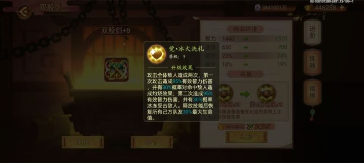 1.此技能为全体伤害且分两段,自带概率冰冻,配合启灵崆峒/伏羲能稳定上buff。